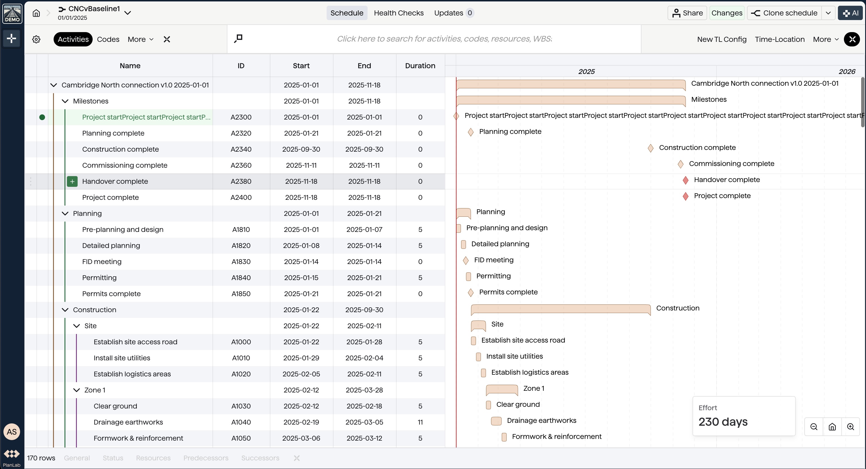 We are building the next generation of our schedule editor to handle really big schedules. In fact, we optmised the editor to handle XERs with 1,000,000 rows of data. Here are the synthetic XERs we generated for performance profiling: 1M.xer has 1 million activities and 2,221 WBS items; 350K.xer contains 350 thousand activities and 682 thousand dependencies, 250 activity codes, 100 calendars, and 100 resources.